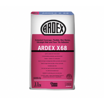 Ardex X68 is an extended coverage, flexible non-slump wall and floor ultralight tile glue. It is light to spread and move around, flexible, and ideal for all tile types including fully vitrified, porcelain and mosaics.