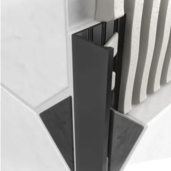 An aluminium profile that forms a right angled edge, giving a stylish and protective finish to tiled corners and edges. Can also be used as a border feature between tiles.