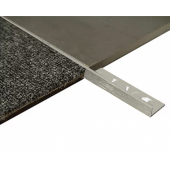 An Aluminium profile for protecting and finishing tiled corners and edges. Provides a decorative finish and protects adjacent tile edges. Features a perforated anchoring leg for securing in adhesive or mortar below the tiled surface. Chemically pre-treated and polyester powder coated.